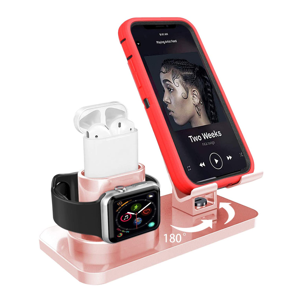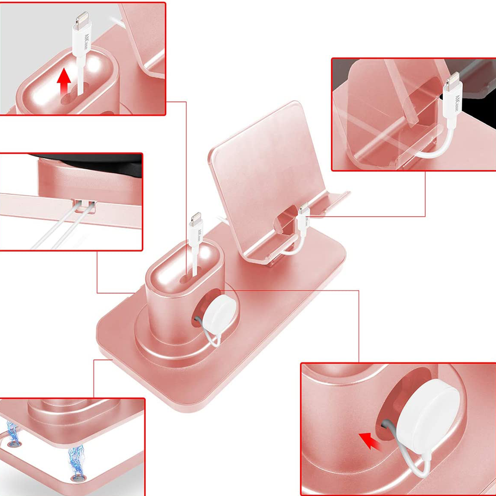 - محطة شحن متعددة المنافذ تدعم iPhone، Micro USB، وType-C.